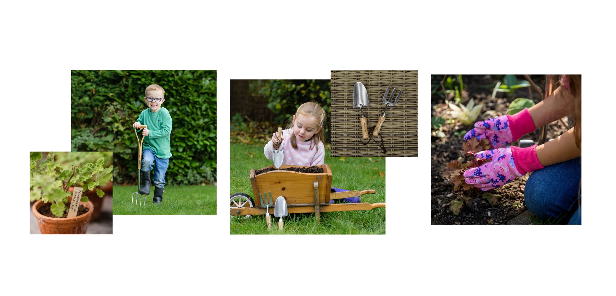 Med trädgårdshandskar från Kent & Stowe i storlekar för mindre händer till en mängd olika "lagom" trädgårdsredskap för små hjälpare.